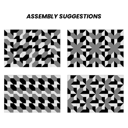 Creative and unlike anything you've ever seen. It can be assembled in different ways, allowing you to change the look of your decor from time to time and always feel like your home is renewed. The secret lies in the way it was designed. There are individual panels that change the design of the rug depending on the position in which they are assembled.