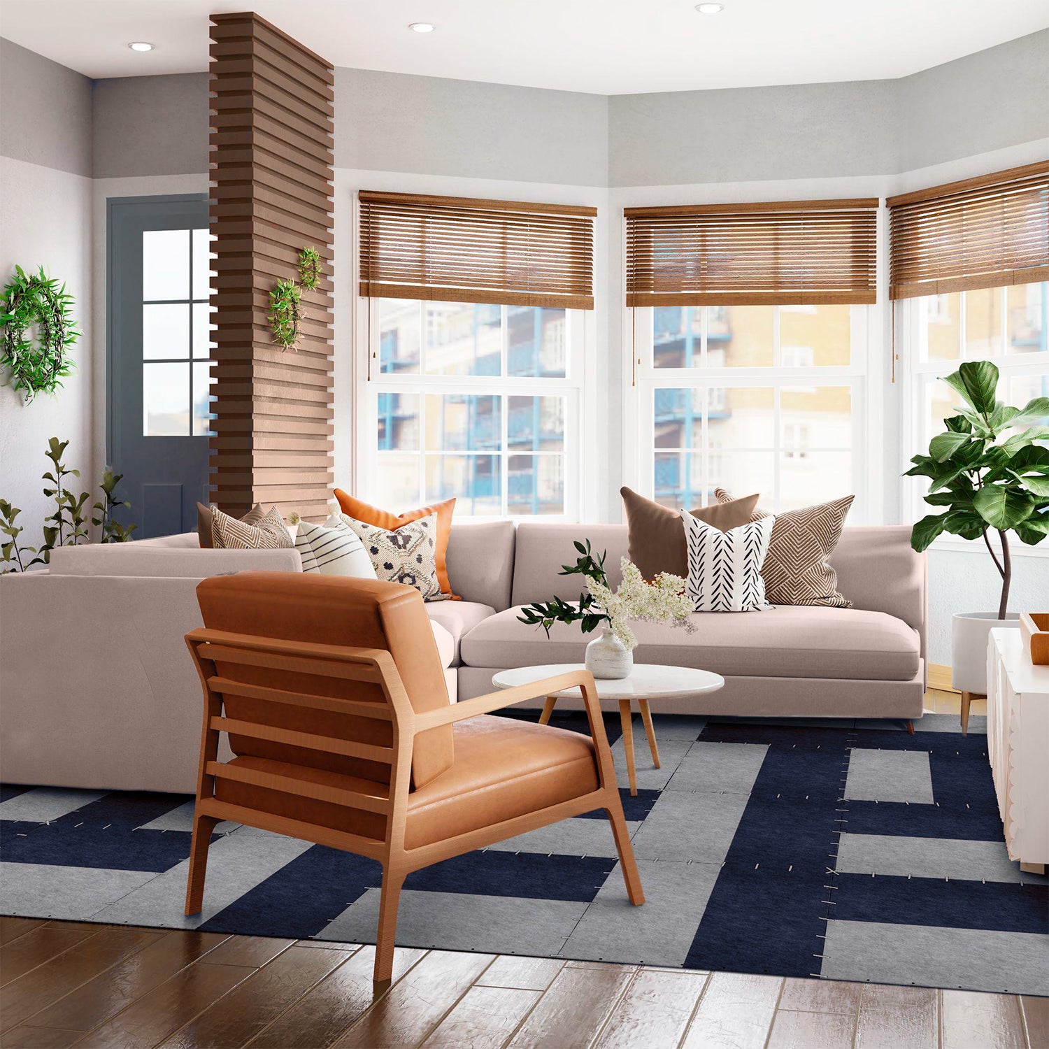 Creative and unlike anything you've ever seen. It can be assembled in different ways, allowing you to change the look of your decor from time to time and always feel like your home is renewed. The secret lies in the way it was designed. There are individual panels that change the design of the rug depending on the position in which they are assembled.