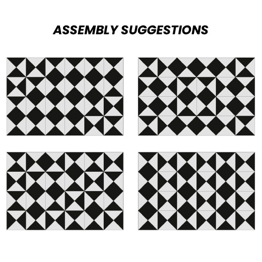 Creative and unlike anything you've ever seen. It can be assembled in different ways, allowing you to change the look of your decor from time to time and always feel like your home is renewed. The secret lies in the way it was designed. There are individual panels that change the design of the rug depending on the position in which they are assembled.